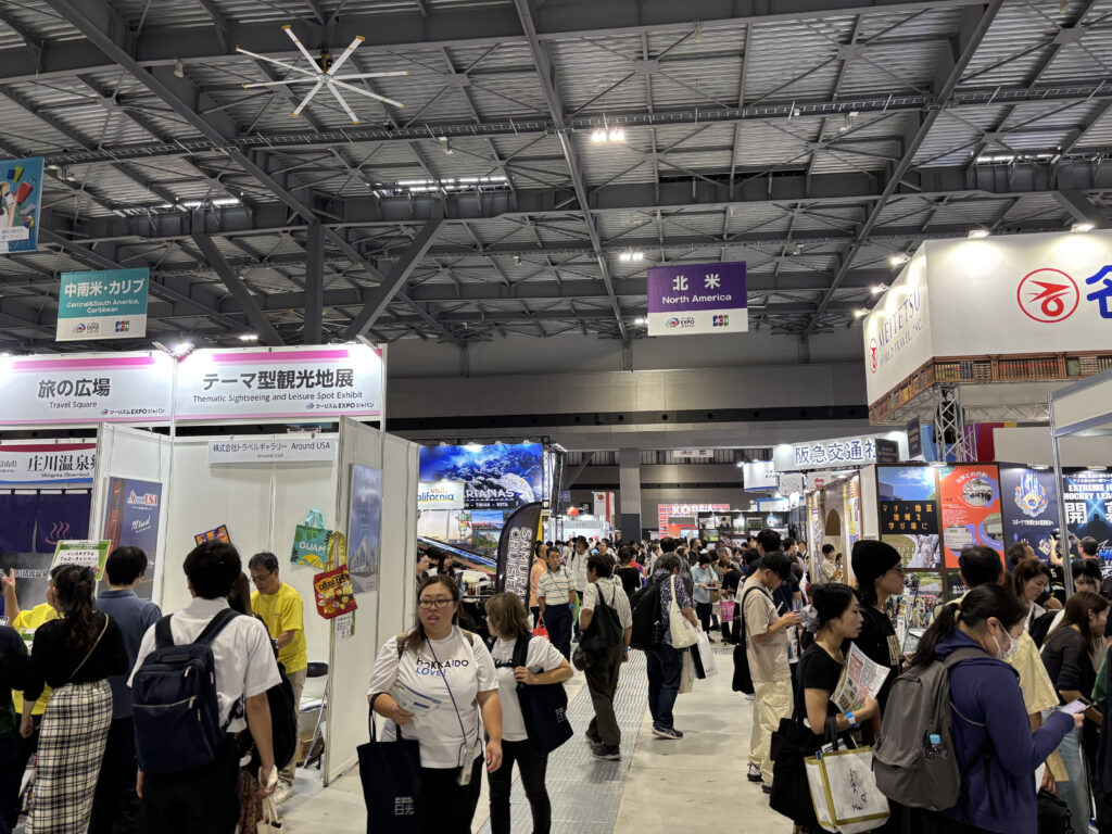 このイベントは国内最大の旅行業界の展示商談会で、毎年9月に東京と大阪で交替で開催されているもので、今年は大阪万博のために、初めて愛知で開催されたものです。海外82ヵ国の国と地域、1,350の企業・団体が出展し、4日間の来場者数は127,677人にのぼりました。